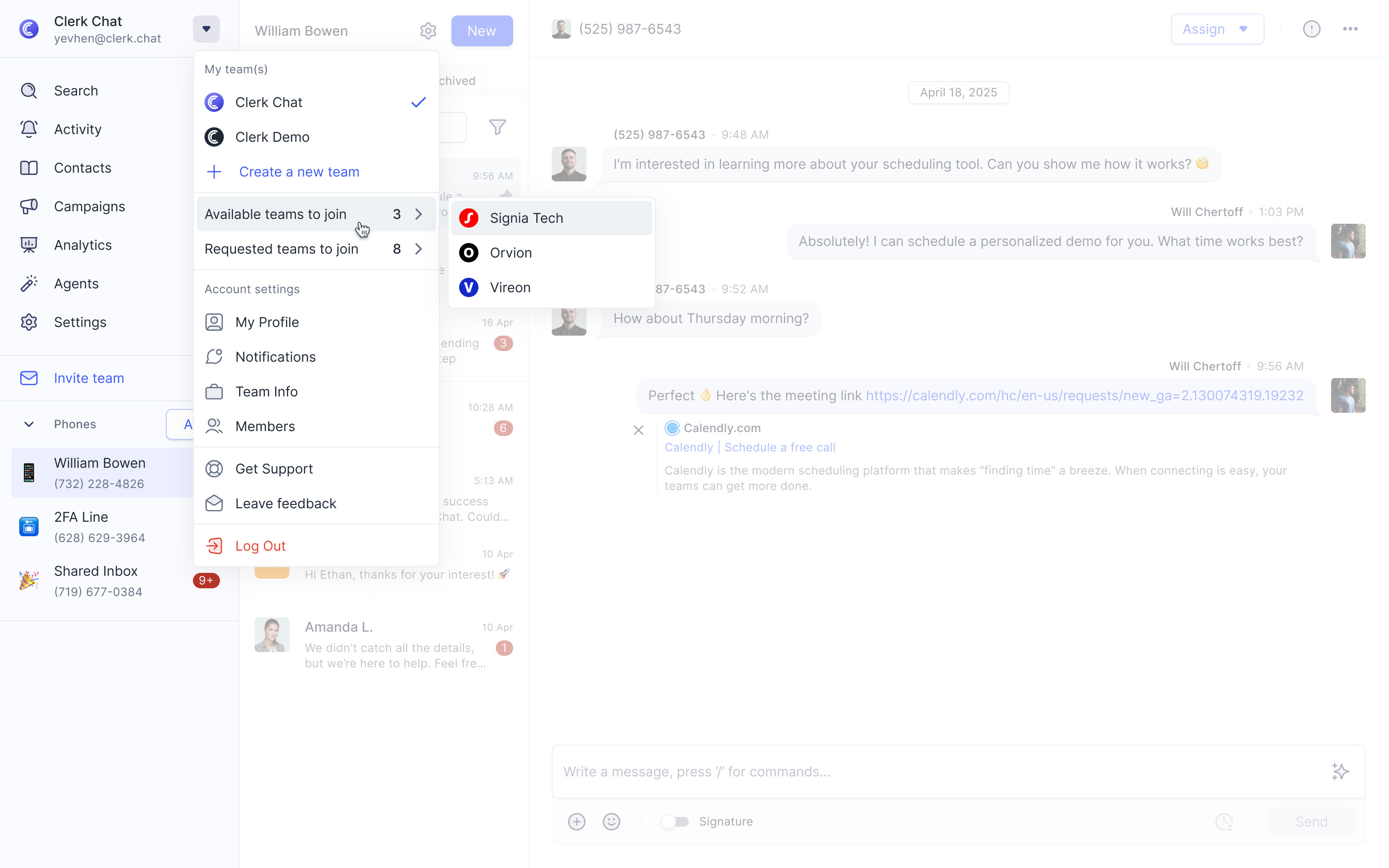 Finding and joining the right teams is now more intuitive. When you click the dropdown arrow to see your workspaces, you'll notice new Available teams (join instantly) and Requestable teams (requiring admin approval).