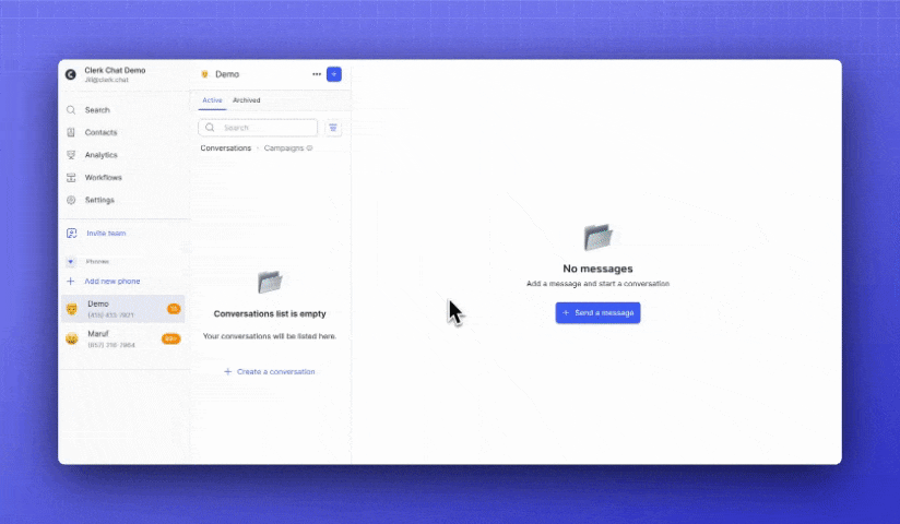 Search across a wide range of your data, including contacts, conversations, inbox, workflows, and workspace.
