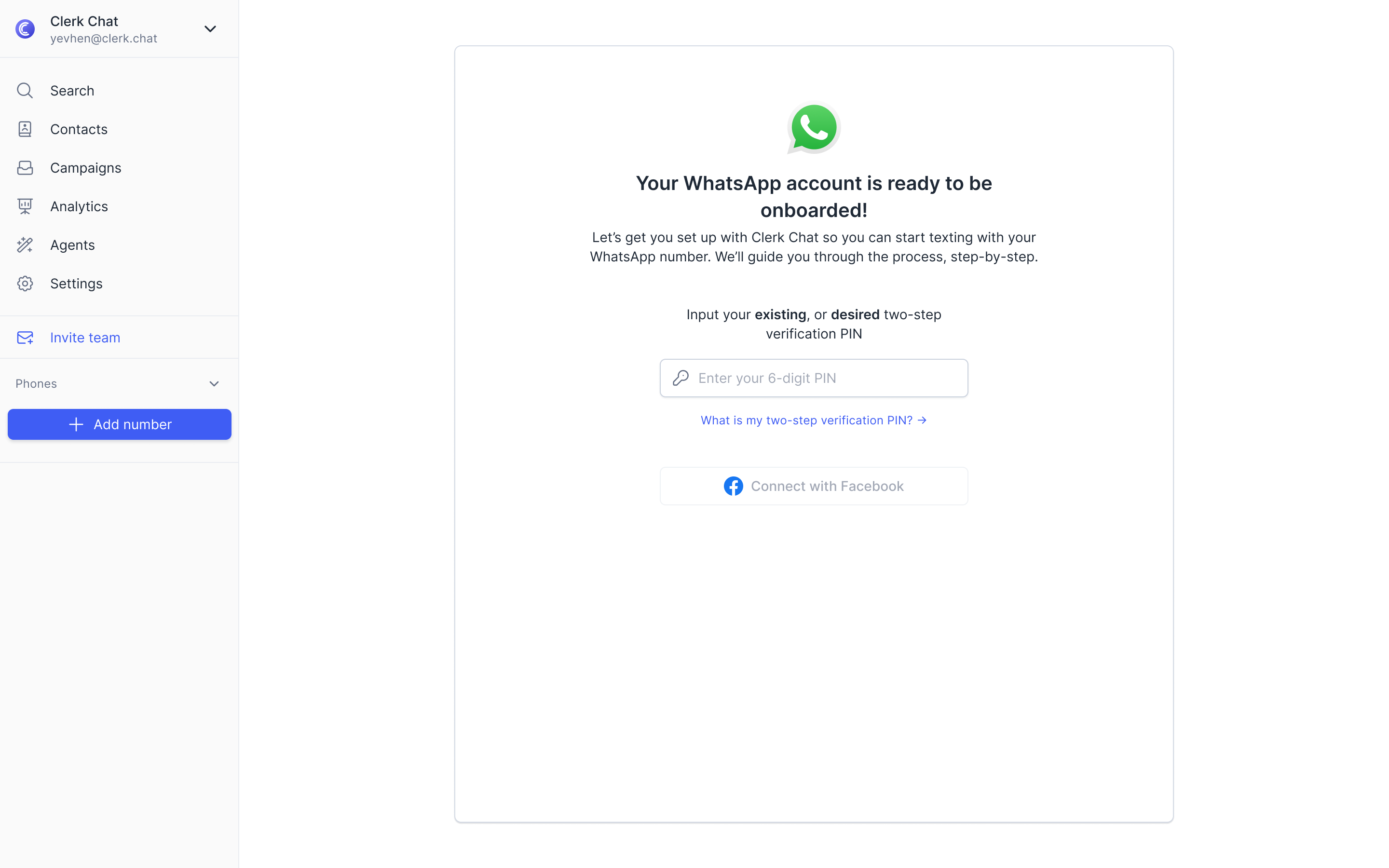 Connect your WhatsApp Business number directly to Clerk Chat and start messaging clients, colleagues, and customers without leaving the platform.